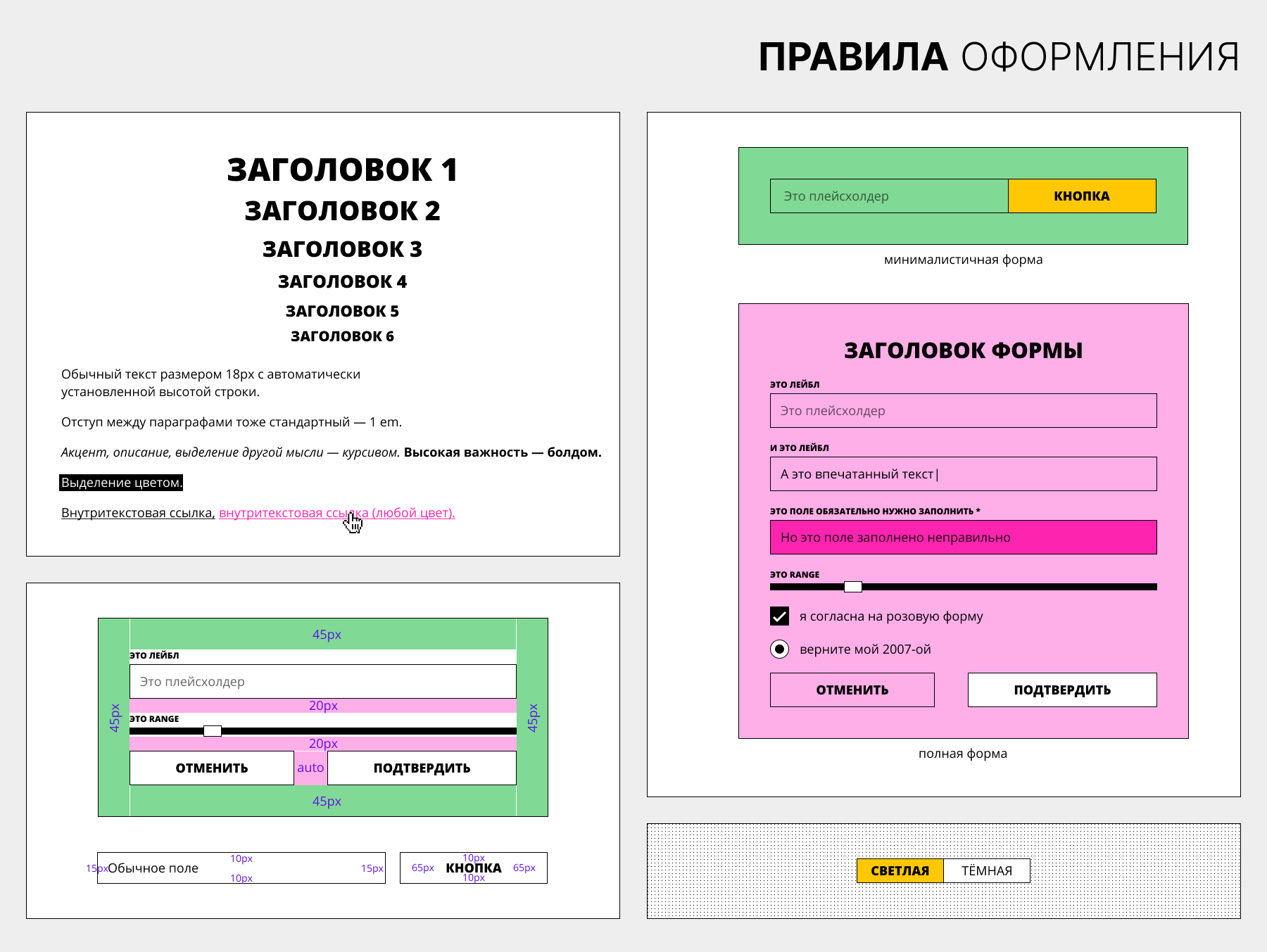 руководство по литературному стилю, включающее как языковые аспекты, так и tone of voice проекта;