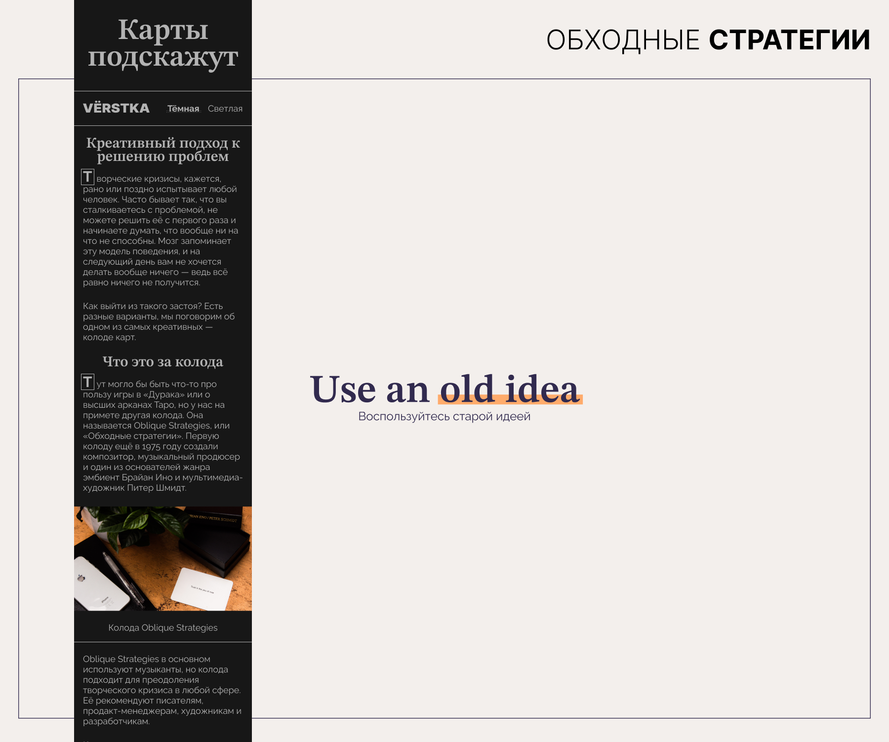 Таким образом, моя задача — подобрать визуальное решение для имеющихся веб-технологий и не выйти за их рамки. Это как дизайнера это требует не только дизайнерских навыков, но и хорошего собственного знания веб-вёрстки.