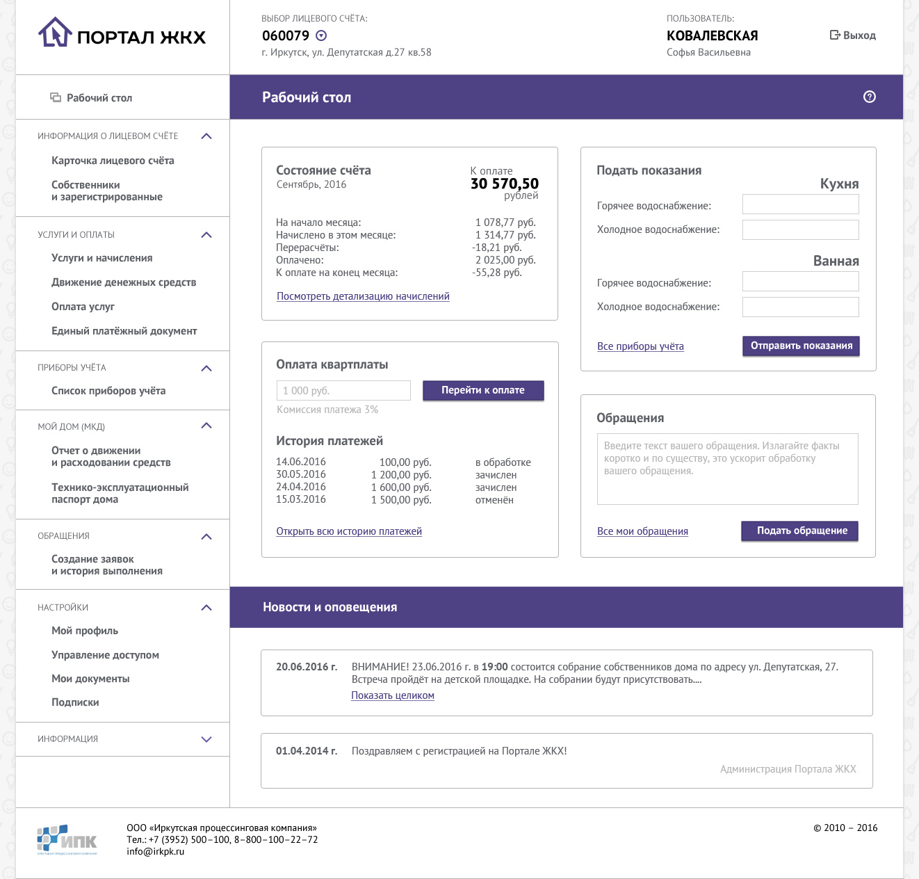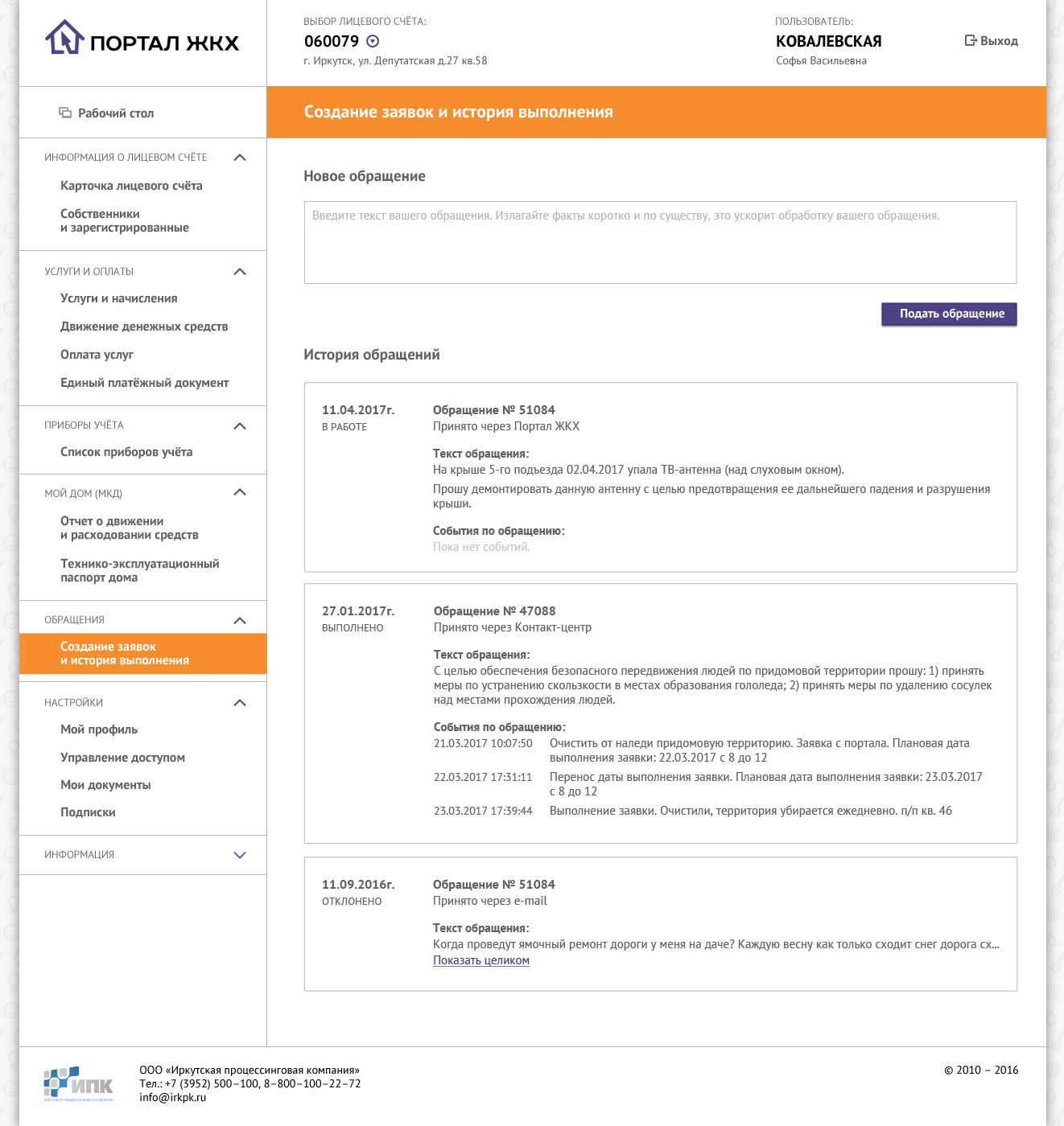 Портал ЖКХ это сервис для жителей Иркутска, который позволяет всё общение со службами ЖКХ вести онлайн, начиная от подачи показаний счётчиков и заканчивая вызовом мастера. Сейчас у продукта 100 000+ пользователей, он доступен на Web, iOS и Android.