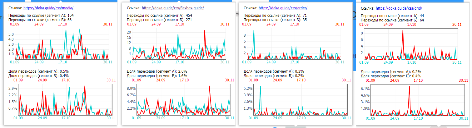 Клики по ссылкам в блоке фичеринга за аналогичные периоды в течение двух лет.